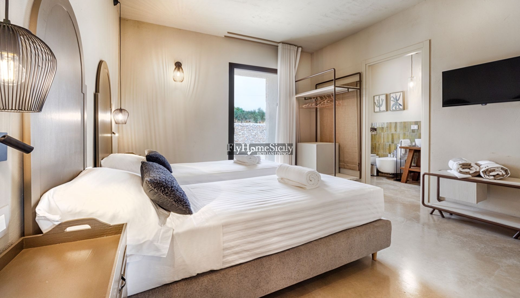 Villa Lumia ist eine prächtige Steinvilla, eingebettet auf einem Hügel in Panoramalage. Die Innenräume sind eine Hymne an Modernität und Eleganz. Neben dem großen Wohnbereich, der sich auf die drei Räume des Wohnzimmers mit Kamin, den Wintergarten mit Blick auf den Pool und die Küche verteilt, stehen Ihnen zehn gemütliche Doppelzimmer ganz für sich allein zur Verfügung, sechs im Erdgeschoss und vier im ersten Stock, mit eigenem Bad, TV und Minikühlschrank. Ein elftes Badezimmer im Erdgeschoss wurde für unsere behinderten Gäste konzipiert. Die Außenbereiche sind funktionell, mit großen schattigen Veranden, dem herrlichen Panorama-Infinity-Pool, der eine Größe von 7 x 18 mt. hat., der mediterrane Garten mit aromatischen Essenzen, der Grill und Parkplätze mit Elektroladestation. Umgeben von Olivenbäumen, Johannisbrotbäumen und Weizenfeldern ist Villa Lumia die ideale Lösung für diejenigen, die einen Urlaub mit Familie und Freunden inmitten einer Oase der totalen Entspannung und des Luxus verbringen möchten.