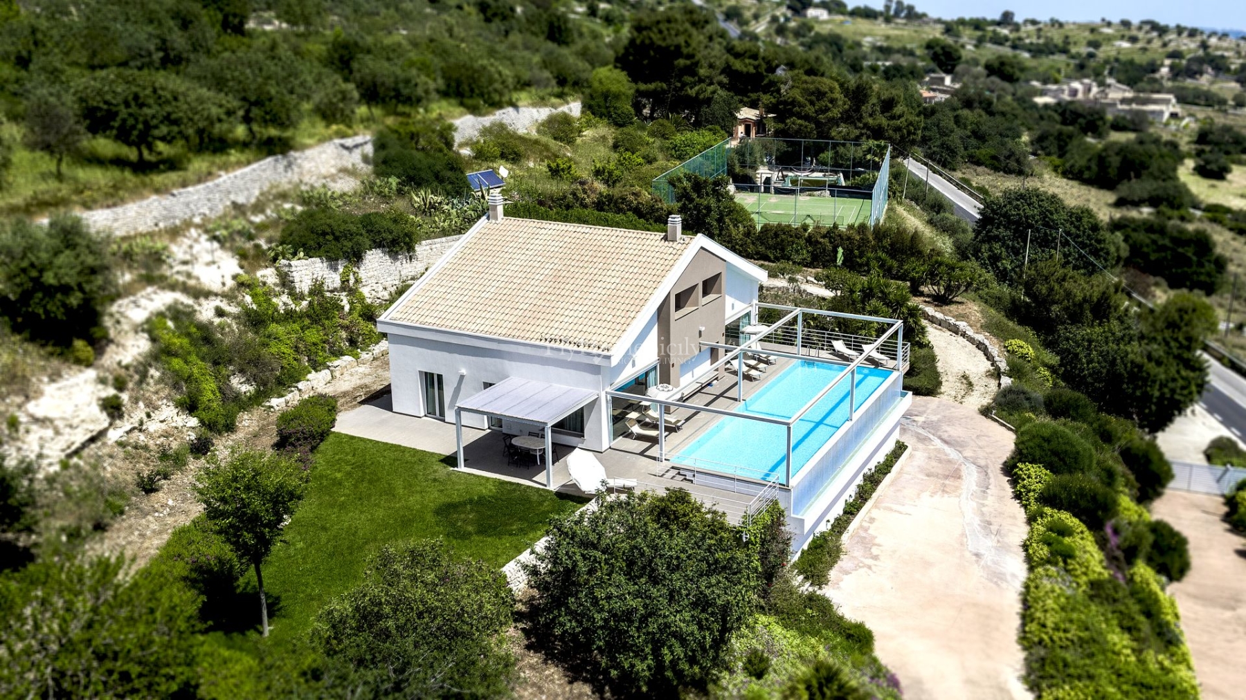Märchenhafte private Villa mit atemberaubender Aussicht, Infinity Pool und Tennisplatz.