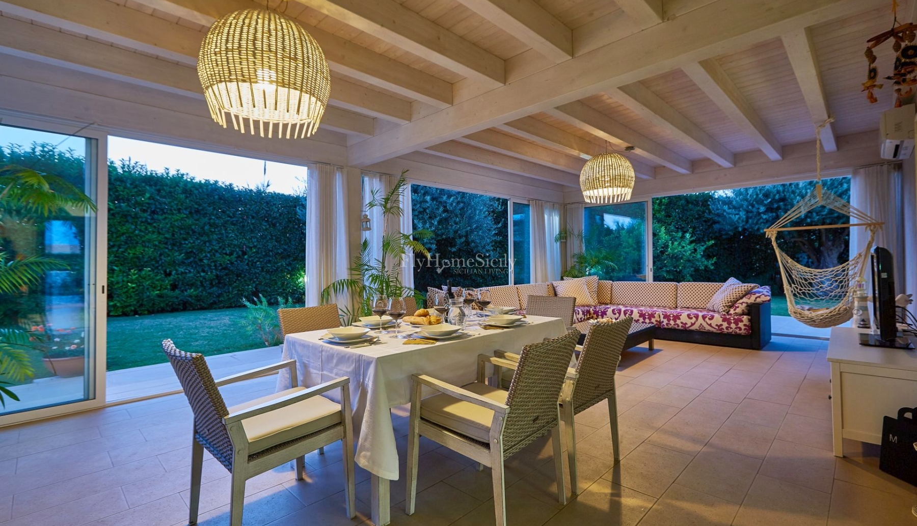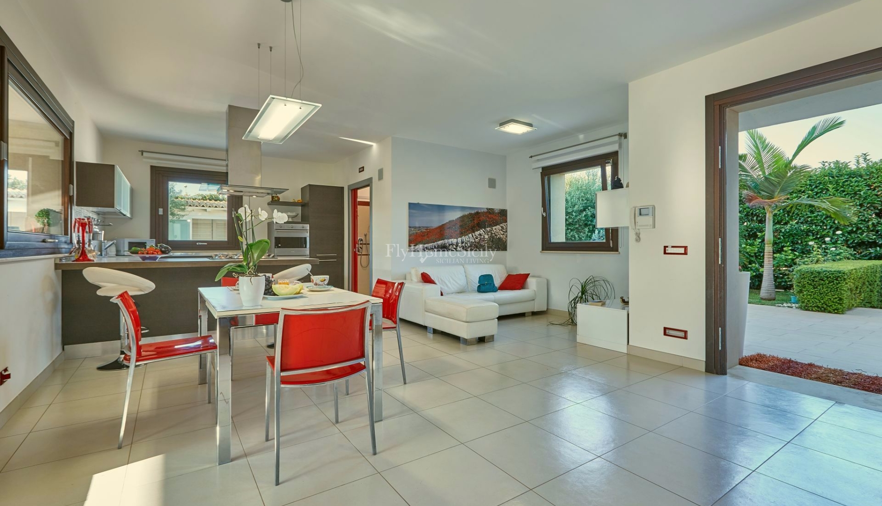 À côté de la réserve naturelle de la rivière Irminio, entourée d'un très beau jardin et avec une grande piscine, Villa Flora est la solution idéale pour les couples ou les familles souhaitant pure détente dans un cadre raffiné, lumineux et élégant. Villa Flora accueille confortablement sept adultes et un enfant. Elle se trouve à proximité de Marina di Ragusa. Vous pouvez tranquillement passer quelques jours agréables sur la plage, vous consacrer à des excursions dans les villes baroques tardives de Scicli, Modica et Ragusa et découvrir la richesse des produits locaux, tels que l’huile de Chiaramonte, de notre production. Villa Flora dispose d'un petit appartement de deux pièces au premier étage, utilisé par le gardien uniquement le soir et la nuit et avec un accès indépendant. Les invités sont laissés avec l'usage exclusif de la propriété restante.